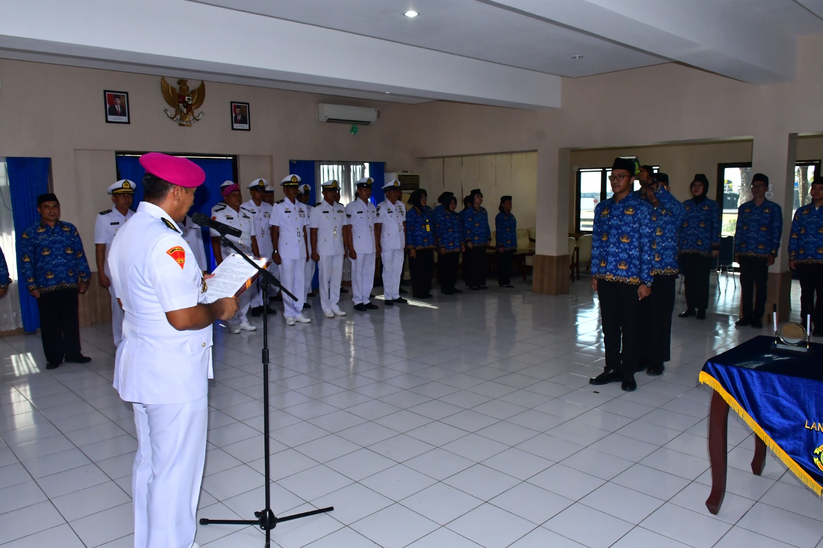 Lantamal VI Makassar laksanakan kegiatan mengambilan sumpah/ janji Pegawai Negeri Sipil (PNS) dan pengarahan Pegawai Pemerintah dengan Perjanjian Kerja (PPPK) Lantamal VI Tahun 2023 yang digelar di ruang PP Jaladri Mako Lantamal VI, Jum’at (22/09/2023).