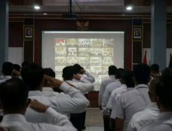 Seluruh pegawai Lembaga Pemasyarakatan Kelas I Medan yang terdiri dari pejabat adminitrasi dan pegawai staf mengikuti apel pagi yang diikuti secara virtual bertemapt di Aula Gedung III, Rabu Pagi (4/01).
