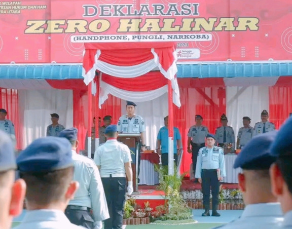 Kepala Lembaga Pemasyarakatan Kelas I Medan, Maju Amintas Siburian dan Jajarannya mengikuti Pelaksanaan Apel Deklarasi Zero Halinar (HP, Pungli dan Narkoba) yang dipimpin langsung oleh Kepala Kantor Wilayah Kemenkumham Sumatera Utara, Imam Suyudi saat memimpin Pelaksanaan Apel Deklarasi Zero Halinar (HP, Pungli dan Narkoba) Selasa (16/5).