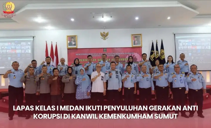 Lembaga Pemasyarakatan Kelas I Medan mengikuti Penyuluhan Gerakan Anti Korupsi yang bertujuan untuk menciptakan pelayanan prima yang berintegritas. Kegiatan yang dilaksanakan Kantor Wilayah Kementerian Hukum dan Hak Asasi Manusia Sumatera Utara bertempat di Aula Soepomo kantor wilayah, Selasa (25/07).