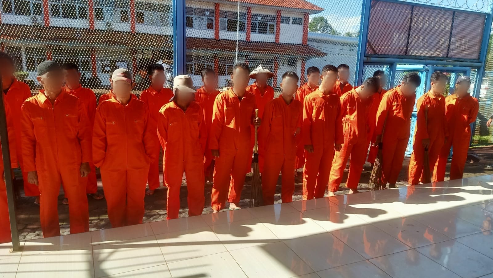 Kegiatan gotong royong membersihkan lingkungan kali ini mengerahkan sebanyak 20 WBP Lapas Kotaagung dan diawasi oleh Staf KPLP dan Petugas Jaga yang dilakukan di di beberapa titik, antara lain lapangan upacara, halaman sekitar Aula Besar, dan pekarangan hingga atap-atap Blok Hunian WBP.