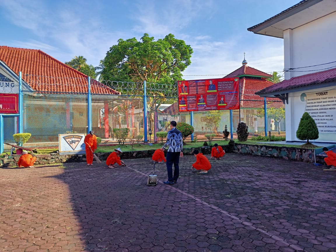 Kegiatan gotong royong membersihkan lingkungan kali ini mengerahkan sebanyak 20 WBP Lapas Kotaagung dan diawasi oleh Staf KPLP dan Petugas Jaga yang dilakukan di di beberapa titik, antara lain lapangan upacara, halaman sekitar Aula Besar, dan pekarangan hingga atap-atap Blok Hunian WBP.