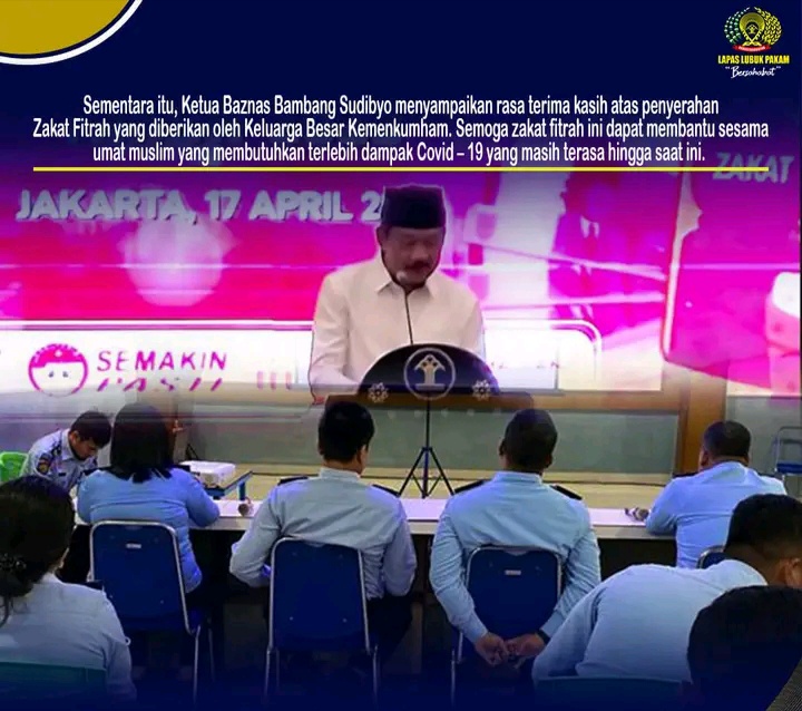 Sementara itu, Ketua Baznas Bambang Sudibyo menyampaikan rasa terima kasih atas penyerahan Zakat Fitrah yang diberikan oleh Keluarga Besar Kemenkumham. Semoga zakat fitrah ini dapat membantu sesama umat muslim yang membutuhkan terlebih dampak Covid – 19 yang masih terasa hingga saat ini.