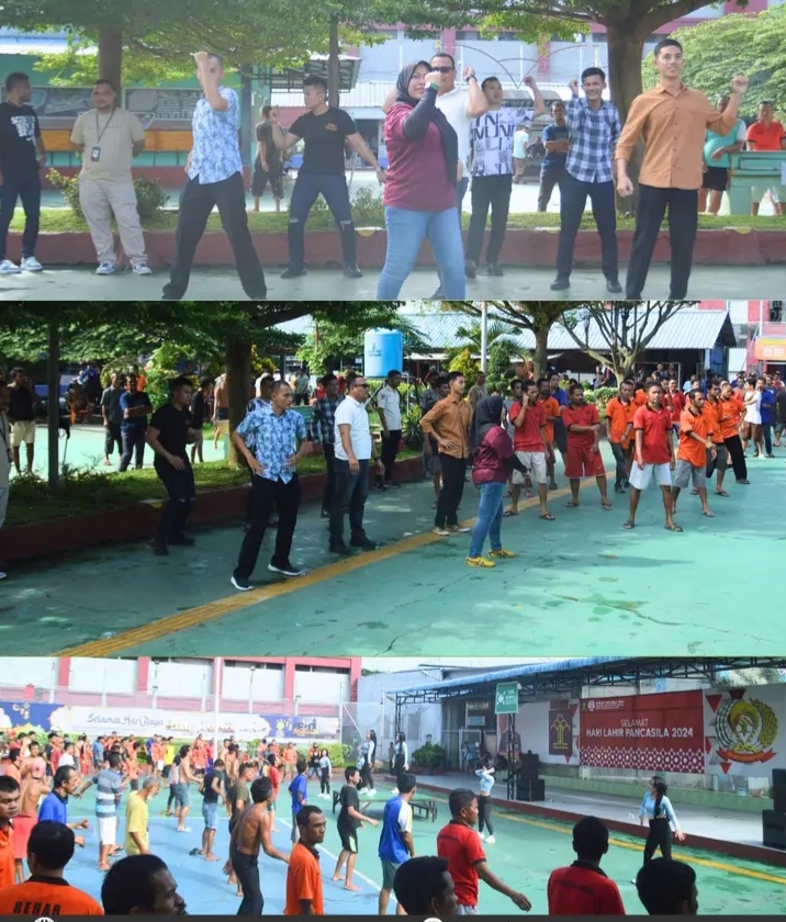 Lembaga Pemasyarakatan (Lapas) Kelas I Medan, melaksanakan senam pagi bersama yang menjadi salah satu kegiatan rutin Pembinaan yang melibatkan para petugas dan Warga Binaan Pemasyarakatan (WBP), bertempat di Lapangan Olahraga Lapas Medan.Sabtu (08/06/2024).