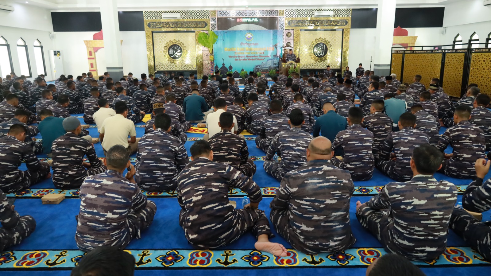 TNI AL/Koarmada III. Panglima Komando Armada (Pangkoarmada) IIl Laksamana Muda TNI Rachmad Jayadi yang didampingi Ketua Daerah Jalasenastri Armada (KDJA) III Ny. Insani Rachmad Jayadi dan seluruh Prajurit Koarmada III serta Pengurus/ Anggota Jalasenastri Armada III mengikuti peringati Maulid Nabi Muhammad SAW 1445 H/2023 M di Masjid Baiturrahman Mako Armada III, Katapop, Sorong, Papua Barat Daya. Jumat (29/09/23).