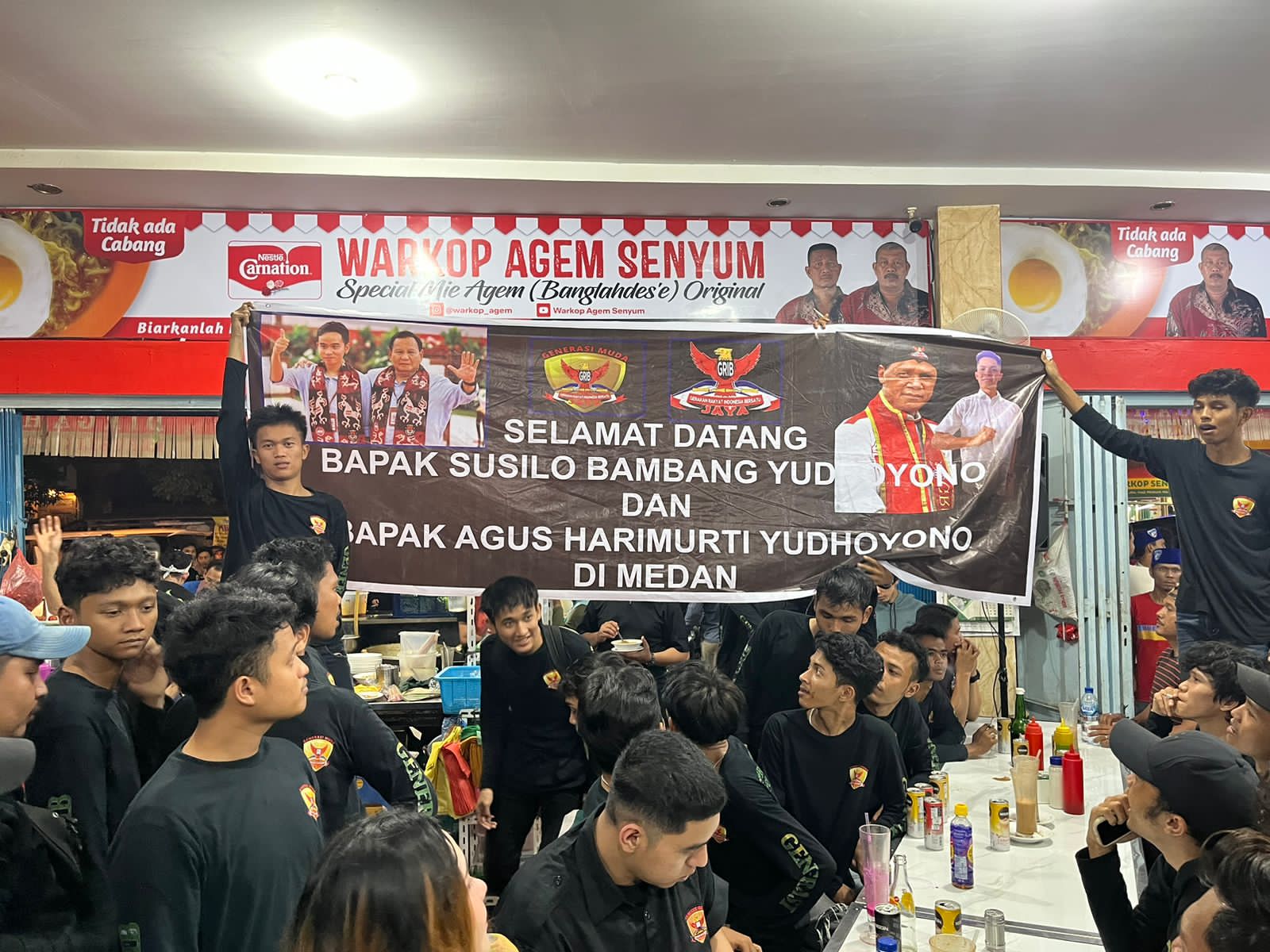 Melenial Partai Demokrat Kabupaten Deli Serdang yang langsung pembinaan Bunda Ir. Hj. Anita Lubis mendapatkan suatu kesempatan untuk langsung berjumpa dengan Presiden ke 6 Bapak Susilo Bambang Yudhoyono (SBY) dan Ketua Umum Partai Demokrat Agus Harimurti Yudhoyono (AHY) di Warung Kopi (warkop) Agem Multatuli medan Rabu 27 Des 2023 didampingi oleh Ketua DPD Partai Demokrat Sumatera Utara bersama pengurus dan jajarannya usai pertemuan konsoldasi Gedung Regale Internasional Convention Medan. Tepat pukul 20.00 wib rombongan Bapak SBY dan AHY langsung menuju Warkop Agem untuk bertemu anak melenial Partai Demokrat Deli Serdang yang sudah dari sore menunggu kehadiran mereka.