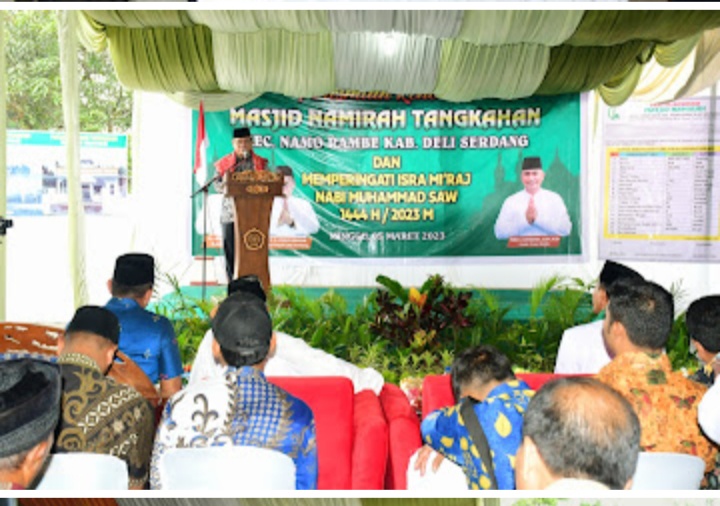 Pada sambutannya di pada peresmian Masjid Namirah di Dusun II, Desa Tangkahan, Kecamatan Namorambe dan peringatan Isra’ Mi’raj, Wabup menyampaikan masjid sebagai Pusat peribadatan dan kebudayaan telah memberi kontribusi sangat besar dalam pembinaan umat.