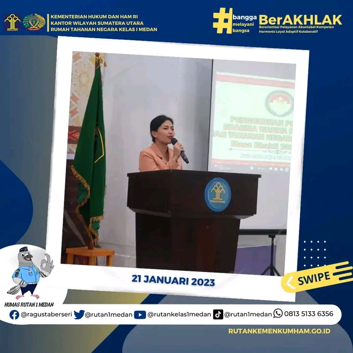 Hari ini Dharma Wanita Persatuan Rutan Kelas I Medan menyelenggarakan pengukuhan pengurus periode 2023-2025 yang di Ketuai oleh Ny Joan Nimrot, Sabtu (21/01/2023).