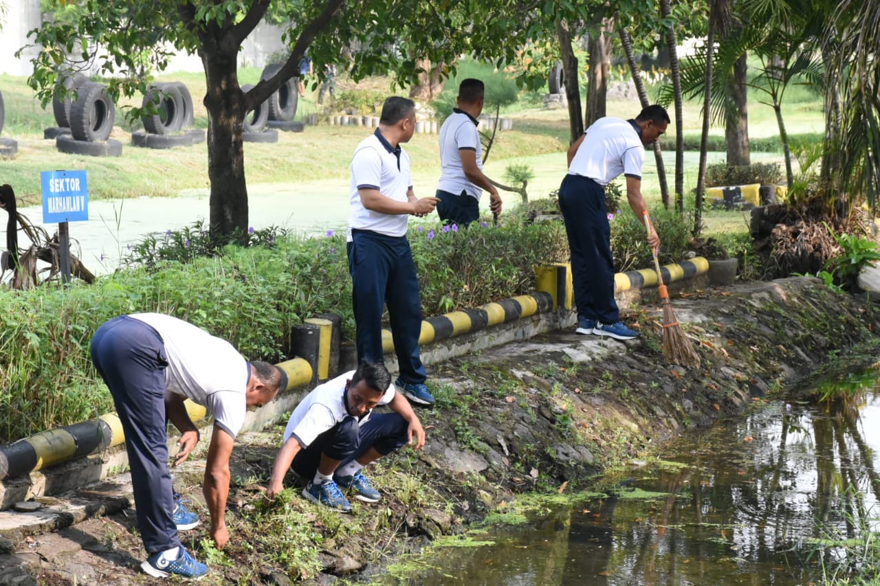 Pangkalan Utama TNI AL (Lantamal) V melaksanakan bersih-bersih Lingkungan di Daerah Basis TNI AL (DBAL) Jl Hangtuah Ujung Surabaya. Jumat (23/02/2024).