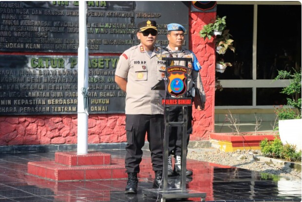 Kapolres Binjai AKBP Rio Alexander Panelewen Sik, memberikan arahan terhadap personil Polres Binjai dan Polsek jajaran di lapangan apel Jalan Sultan Hasanuddin Kelurahan Satria, Kecamatan Binjai Kota, Provinsi Sumatera Utara (Rabu 13/9/2023),