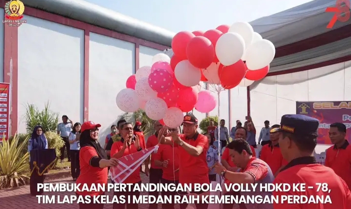 Kepala Kantor Wilayah Kemenkumham Sumut, Imam Suyudi membuka pertandingan bola volly antar wilayah dalam rangka HDKD ke – 78 tahun 2023 di lingkungan Kanwil Kumham Sumut bertempat di Lapangan Volly Lembaga Pemasyarakatan Kelas I Medan, Senin 24 Juli 2023.