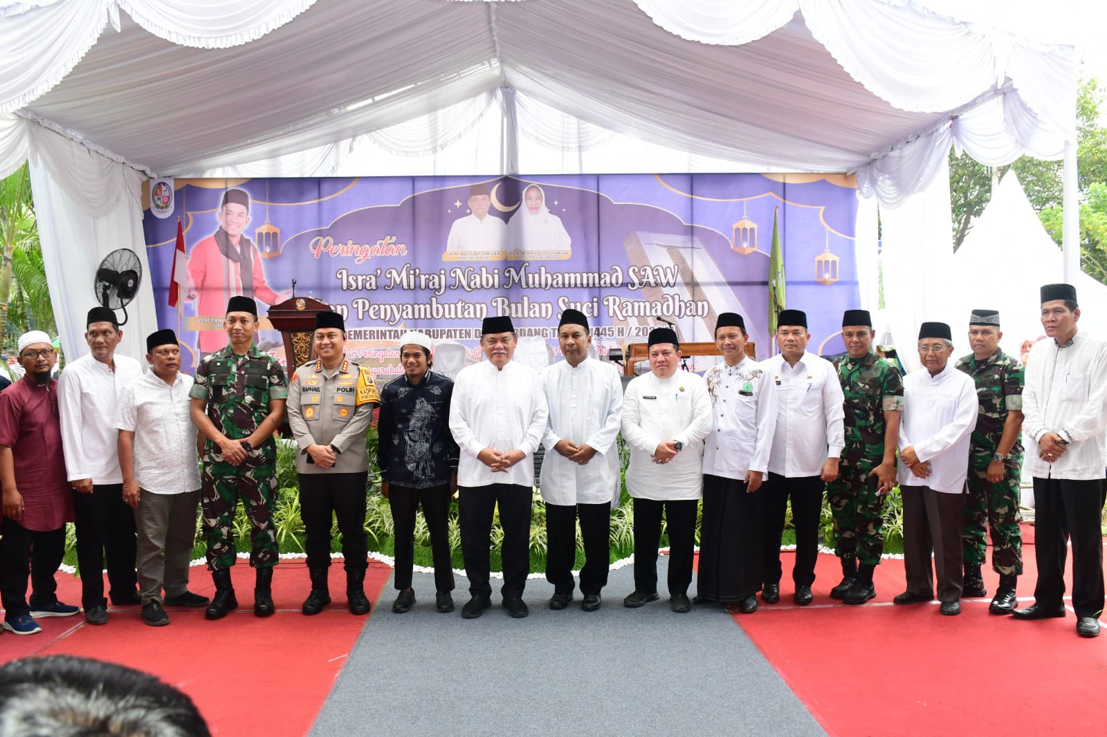 Peringatan Isra Mi’raj Nabi Muhammad SAW dan Menyambut bulan suci Ramadhan Pemerintah Kabupaten Deli Serdang tahun 1445 H/2024 M di Masjid Agung Sultan Thaf Sinar Basyarsah Komplek Pemkab Deli Serdang Kecamatan Lubuk Pakam, Rabu (6/3/2024).