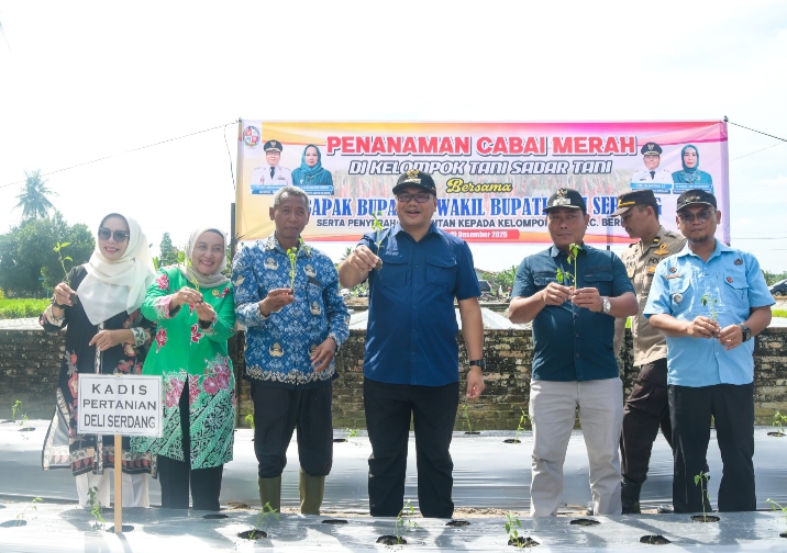 “Melalui tanam cabai merah ini, Pemerintah Kabupaten Deli Serdang berharap pemanfaatan teknologi pertanian, bantuan alsintan, benih, dan pupuk yang bersumber dari APBD dapat meningkatkan efisiensi produksi, menjaga ketersediaan pangan, serta berdampak langsung pada kesejahteraan petani dan masyarakat secara luas,” harap Bupati.