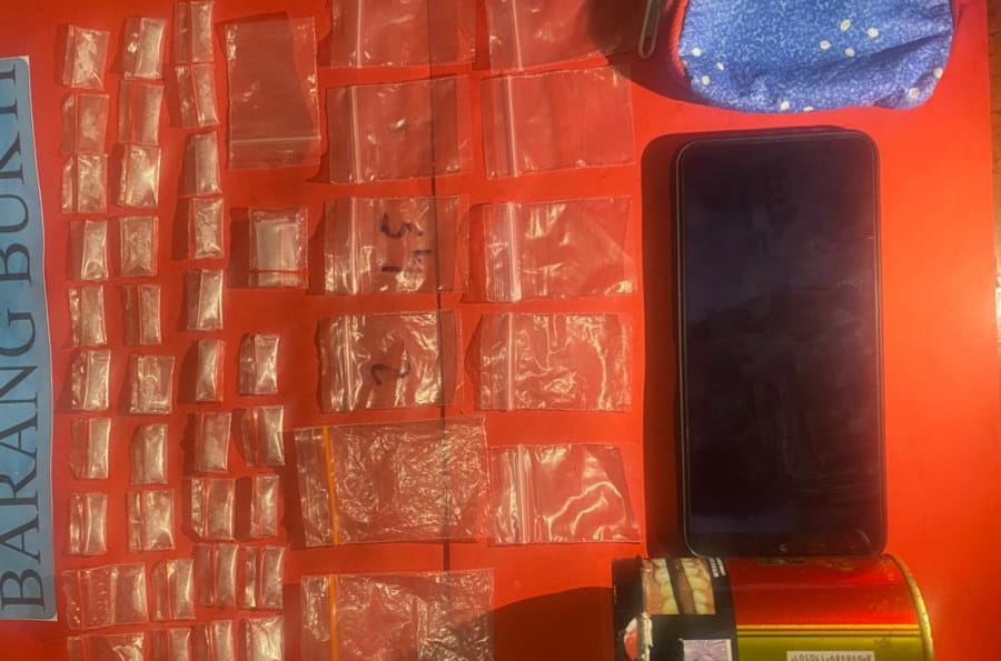 Sambungnya, dari tersangka diamankan barang bukti 35 plastik klip berisi kristal putih dengan berat 6.49 gram, 12 plastik klip kosong, handphone, kaleng rokok dan dompet.