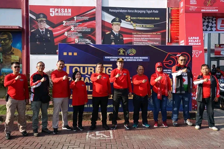 Dalam rangka memperingati Hari Bhakti Pemasyarakatan ke-59, Kantor Wilayah Kementerian Hukum dan HAM Sumatera Utara melaksanakan kegiatan Touring Bersama dan Bakti Sosial Pemasyarakatan Peduli dengan tema “Transformasi Pemasyarakatan Semakin Pasti Berakhlak, Indonesia Maju”, Senin 10 April 2023.