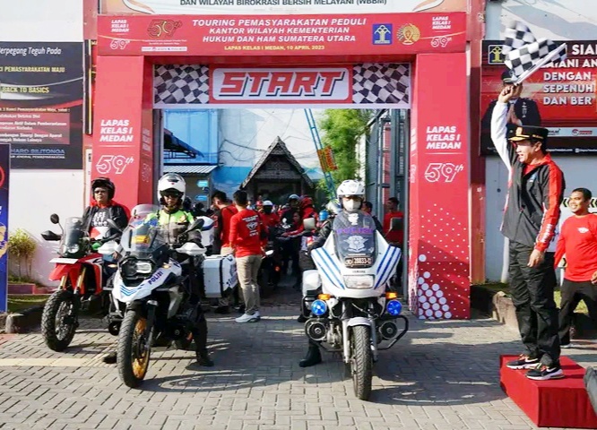 Dalam rangka memperingati Hari Bhakti Pemasyarakatan ke-59, Kantor Wilayah Kementerian Hukum dan HAM Sumatera Utara melaksanakan kegiatan Touring Bersama dan Bakti Sosial Pemasyarakatan Peduli dengan tema “Transformasi Pemasyarakatan Semakin Pasti Berakhlak, Indonesia Maju”, Senin 10 April 2023.
