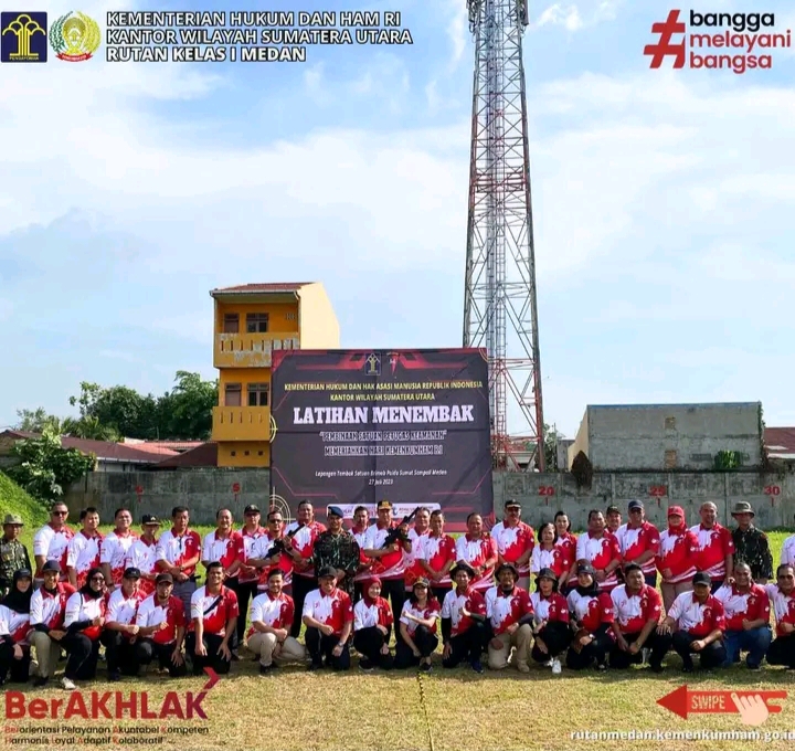 Kegiatan ini dilaksanakan dalam rangka memeriahkan Hari Lahir Kemenkumham RI ke -78 Tahun 2023, Kepala Rumah Tahanan Negara Kelas I Medan bersama jajaran Ka-UPT Medan dan sekitarnya Kamis (27/07/2023) di Lapangan Tembak Brimob Polda Sumatera Utara, Sampali Medan.