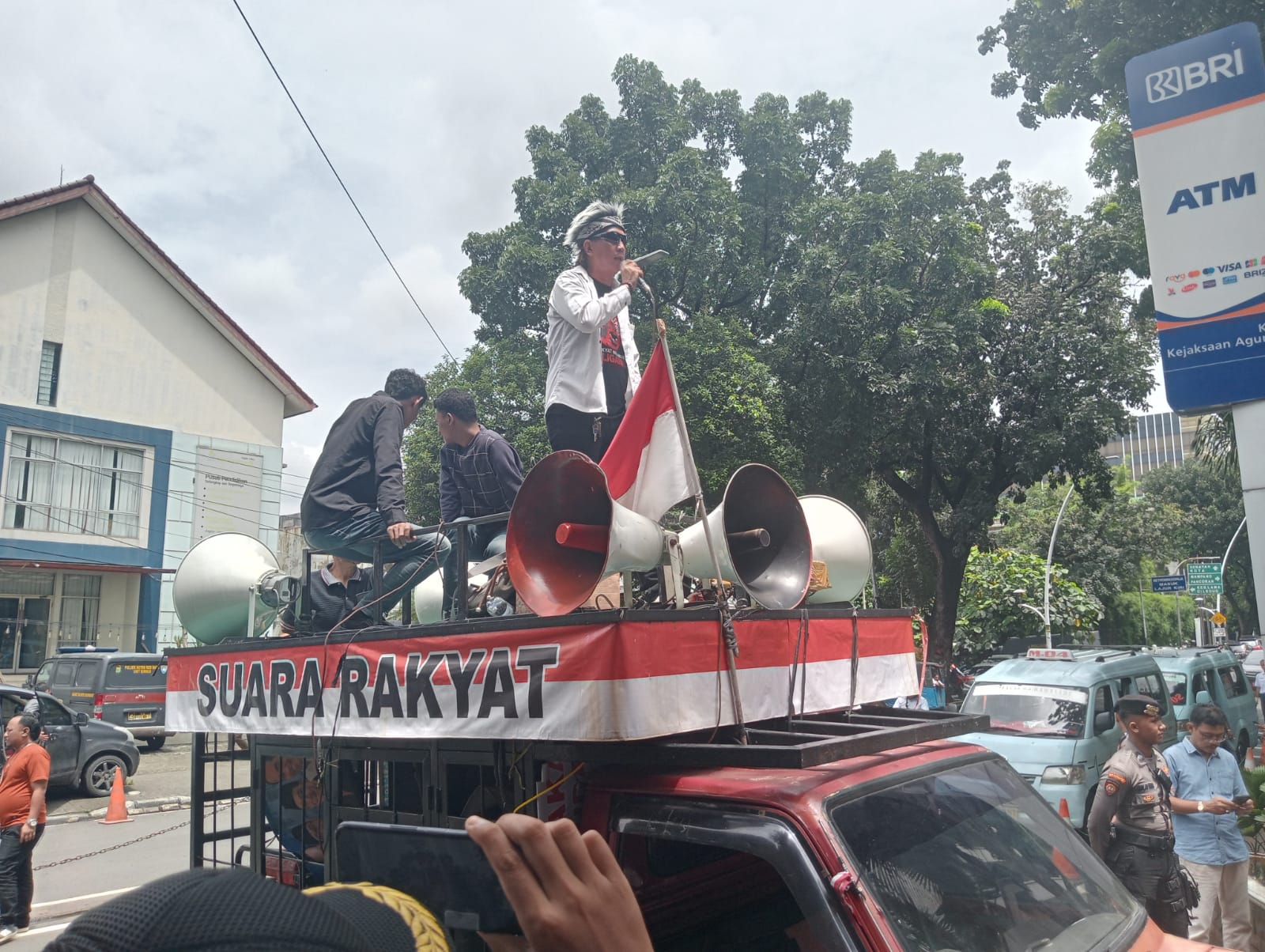 Foto: Massa saat gelar aksi demo di depan kantor kejagung Ri.