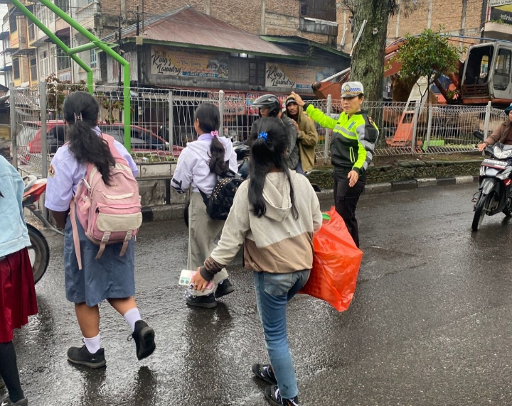 Dalam pelaksanaannya, personel fokus pada titik-titik keramaian, termasuk di depan rumah dinas Bupati Karo yang berdekatan dengan sekolah dasar. Petugas terlihat aktif menyeberangkan anak-anak sekolah dan masyarakat, sehingga arus lalu lintas tetap aman, tertib, dan lancar di tengah kepadatan pagi.