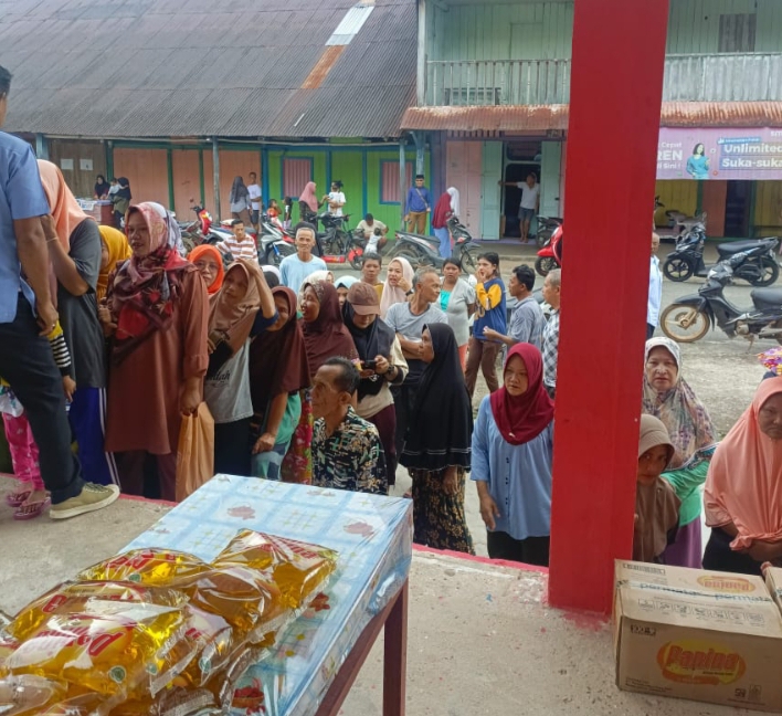 Ket Foto : Masyarakat Lingga di 4 Kecamatan berbondong bondong untuk mendapatkan sembako murah yang di adakan, Perumda Air Minum Tirta Lingga