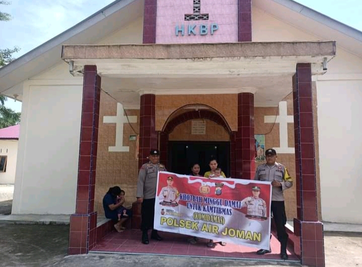 Kepada para Jemaat personel Polsek Air Joman menyampaikan, agar meningkatkan toleransi antar umat beragama dan saling menghargai, guna menjalin kebersamaan serta menjauhi paham radikalisme juga jangan mudah terhasut oleh kelompok-kelompok yang bertentangan dengan Pemerintah.