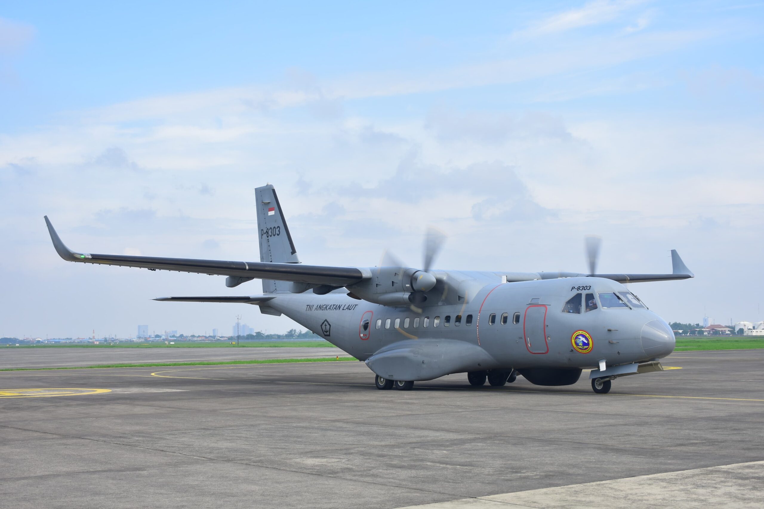 Satu pesawat udara (Pesud) TNl AL, CN 235-200 yang dioperasikan Skuadron Udara 800 Wing Udara 2 Puspenerbal mendukung operasi laut wilayah Timur Indonesia di kendali Gugus Keamanan Laut Koarmada III, Senin (4/3/2024).