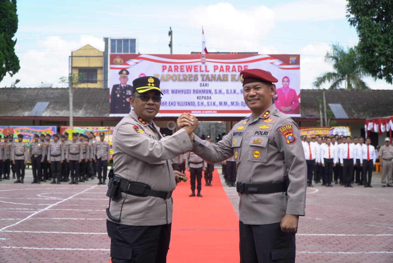 Polres Tanah Karo menggelar acara pisah sambut Kapolres yang berlangsung di Mapolres Tanah Karo, Kamis (22/8/2024). Dalam acara tersebut, jabatan Kapolres diserahkan dari AKBP Wahyudi Rahman, S.H., S.I.K., M.M., kepada AKBP Eko Yulianto, S.H., S.I.K., M.M., M.Tr.Opsla.