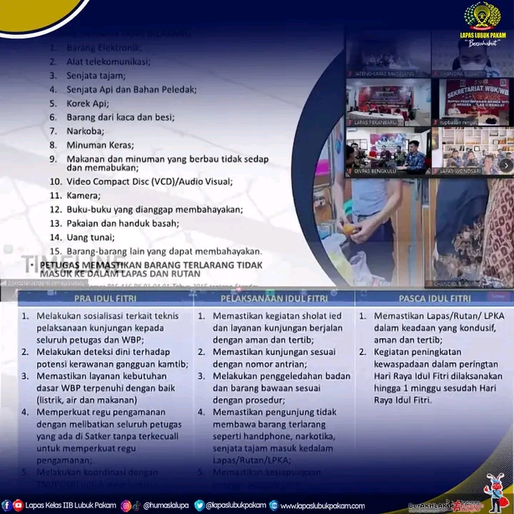 Lapas Kelas IIB Lubuk Pakam Kanwil Kemenkumham Sumut hadiri kegiatan pengarahan sekaligus penguatan tupoksi dalam rangka menyambut Hari Raya Idul Fitri 1444 H tahun 2023 oleh Plt. Direktur Keamanan dan Ketertiban Direktorat Jenderal Pemasyarakatan Bapak Erwedi Supriyanto, Bc.IP., S,H., M.H. Melalui virtual zoom meeting pada Kamis (13/04)