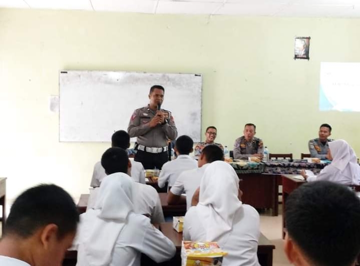Satlantas Polres Asahan bekerja sama dengan Dinas Perhubungan (Dishub) Kabupaten Asahan menggelar Polisi Goes To School di SMA I Air Joman Kecamatan Air Joman Kabupaten Asahan Selasa (01/08/2023).