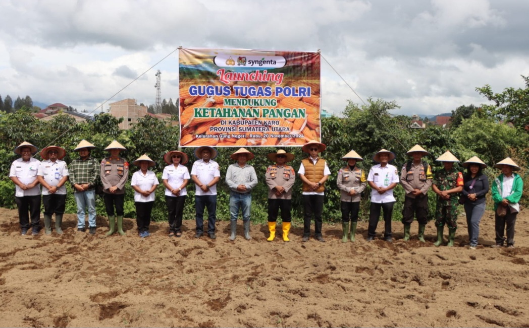 Polres Tanah Karo bersama Pemerintah Kabupaten Karo melaksanakan Launching Gugus Tugas Polri dalam mendukung ketahanan pangan nasional di Perladangan Lo Pinggan, Jalan Kerakyatan, Kelurahan Gung Negeri, Kecamatan Kabanjahe, Rabu(20/11/2024).
