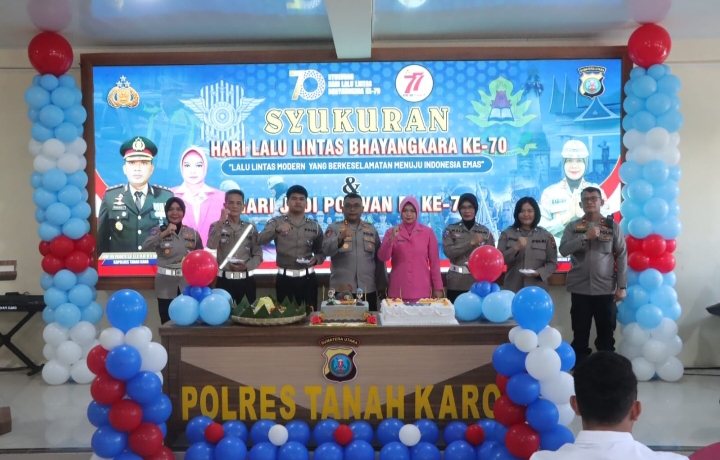 Foto : Syukuran HUT Lantas ke-70 dan HUT Polwan ke-77 di Polres Tanah Karo.