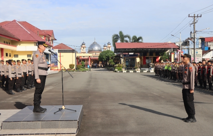 Apel diikuti oleh Wakapolresta Deli Serdang AKBP Juliani Prihartini, S.I.K., M.H., para pejabat utama (PJU), para Kapolsek jajaran, serta personel Polresta Deli Serdang.