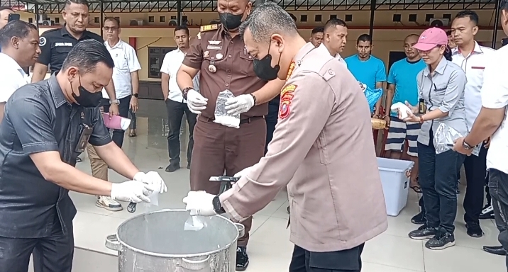 Pemusnahan sabu sabu dilakukan dengan cara direbus bercampur cairan pembersih lantai. Dan untuk barang bukti Daun Ganja dimusnahkan dengan cara dibakar.