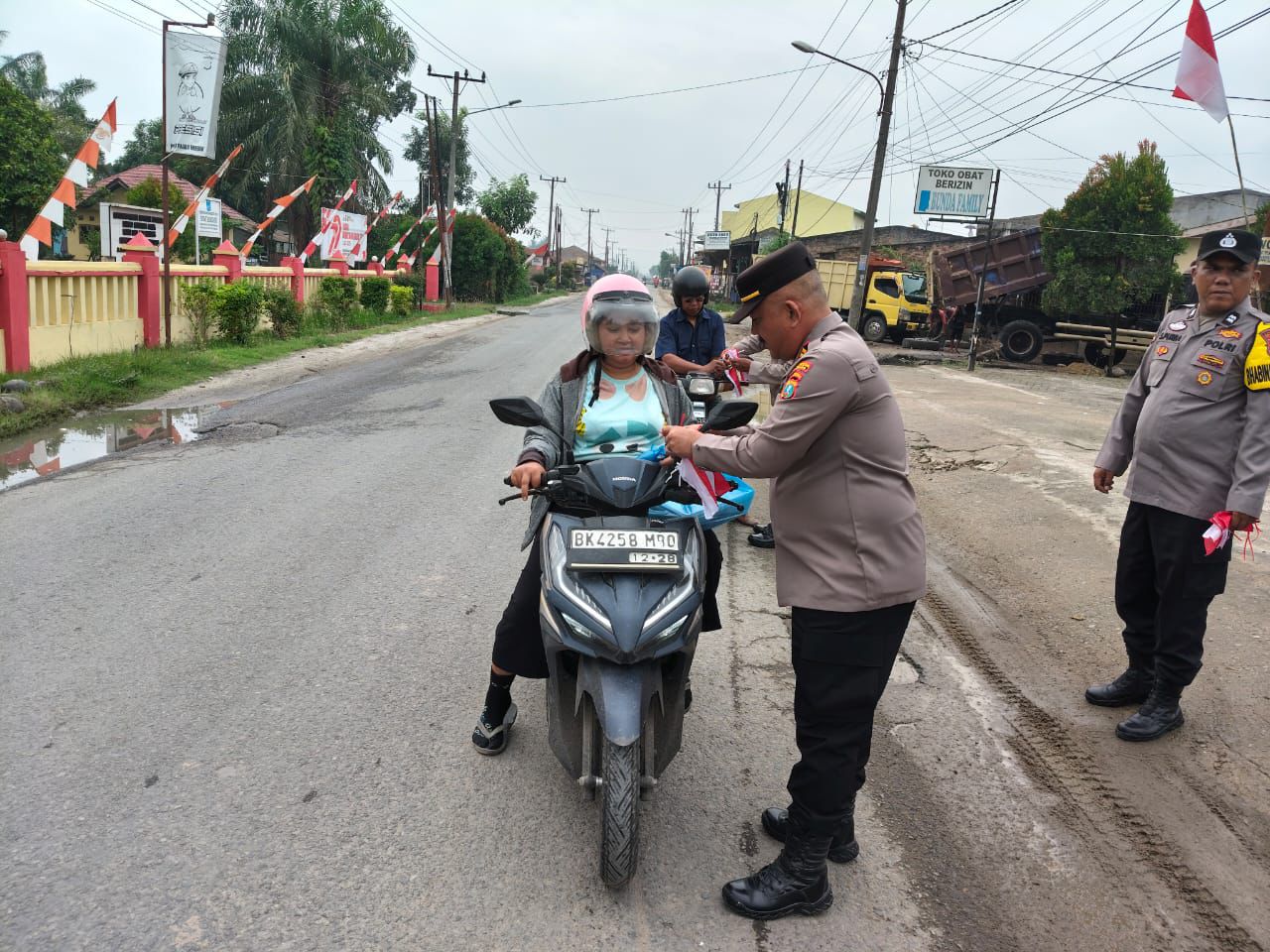 “Terima kasih kepada seluruh personel Polsek Pagar Merbau dan masyarakat yang dengan sukacita mendukung kegiatan ini. Tidak sedikit warga yang belum memiliki bendera karena belum sempat membelinya. Sedikitnya ribuan bendera telah kami bagikan kepada pengendara yang melintas,” ujar IPTU Ronald Sihite.