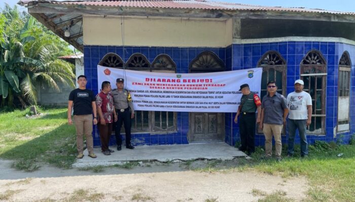 Selanjutnya, personel gabungan memasang papan himbauan di lokasi yang diduga menjadi tempat perjudian tersebut.