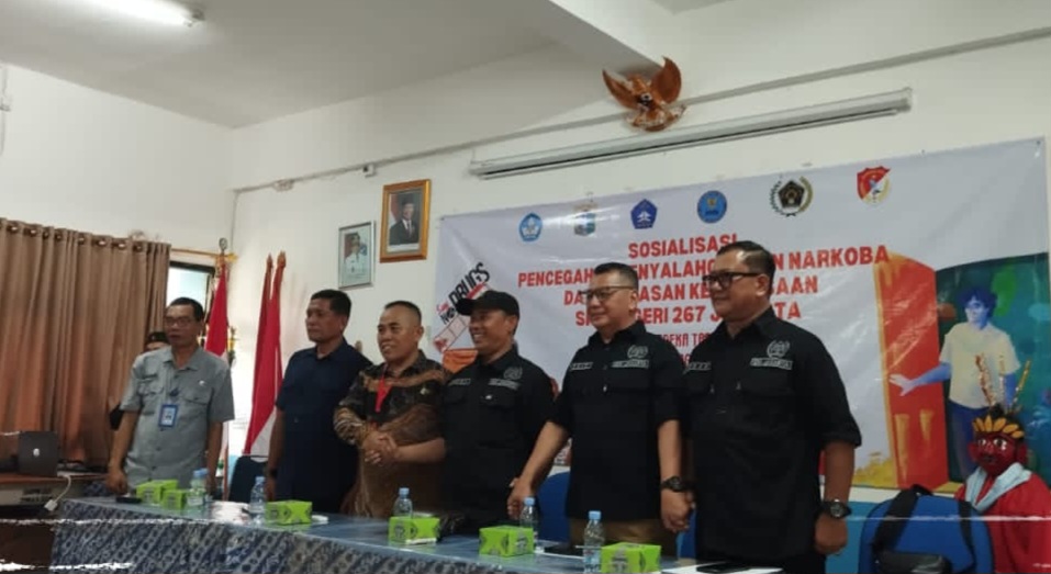 JAKARTA|TambunPos.com – Dalam upaya menanggulangi bahaya penyalahgunaan narkoba sejak usia dini, Persatuan Wartawan Indonesia (PWI) Kelompok Kerja (Pokja) Wali Kota Jakarta Selatan (Jaksel) bersama Sekolah Menengah Pertama Negeri (SMPN) 267, Jakarta Selatan melaksanakan kegiatan sosialisasi bahaya narkoba dan perluasan pengetahuan wawasan kebangsaan di SMPN 267, Jakarta di kawasan Jalan Mairin Swadarma Raya, Ulujami, Pesanggrahan, Jakarta Selatan, Kamis, (16/10/2025).