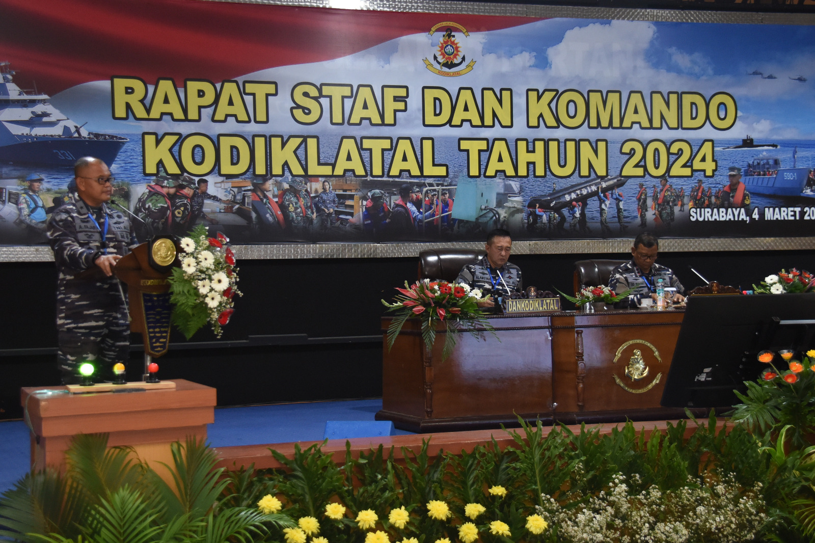 Komandan Kodiklatal (Dankodiklatal) Letjen TNI Marinir Nur Alamsyah secara resmi membuka Rapat Staf dan Komando (Rasko) Kodiklatal yang mengangkat tema, “Kodiklatal Siap Membangun Sumber Daya Manusia TNI Angkatan Laut yang Profesional dan Tangguh untuk Indonesia Maju”, bertempat di Gedung Moeljadi Kodiklatal, Bumimoro Surabaya. Senin (04/03/2024).