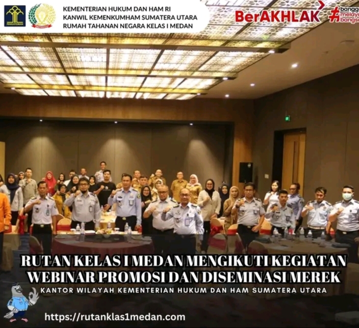 Rutan Kelas I Medan Kanwil Kemenkumham Sumut menghadiri webinar kegiatan promosi dan diseminasi merek di Hotel Grand Mercure Maha Cipta Medan Angkasa Jl. Sutomo No. 1, Perintis, Kota Medan, Senin 29/05/2023).