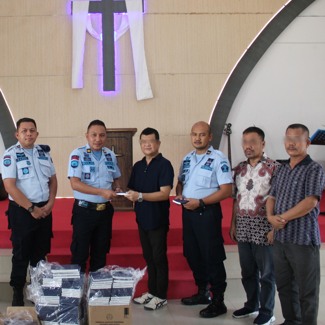 Kasi Pelayanan Tahanan, David Nicolas Berharap Dengan Adanya Penerimaan Alkitab Ini, Diharapkan Warga Binaan Semakin Giat Dan Rutin Beribadah Sesuai Jadwal Yang Sudah Ditentukan. Selanjutnya Acara Dilanjutkan Dengan Pemberian Serah Terima Antara Pihak Yayasan Dengan Pengurus Gereja Dan Diakhiri Dengan Foto Bersama.