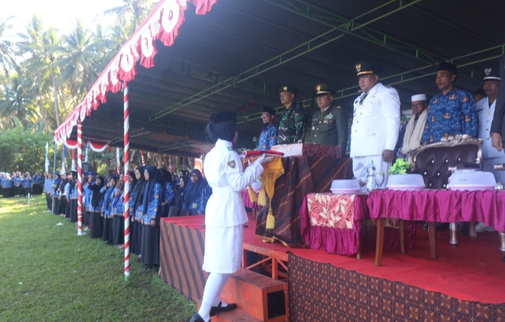 Bertindak sebagai inspektur upacara Camat Makian Barat Ersan Ahmad, dan Komandan Upacara Sertu Bahar, Dan diikuti oleh Personil Satgas TMMD, Anak Sekolah SD, SMP, SMA, ASN sekecamatan Makian Barat Serta Para Undangan.