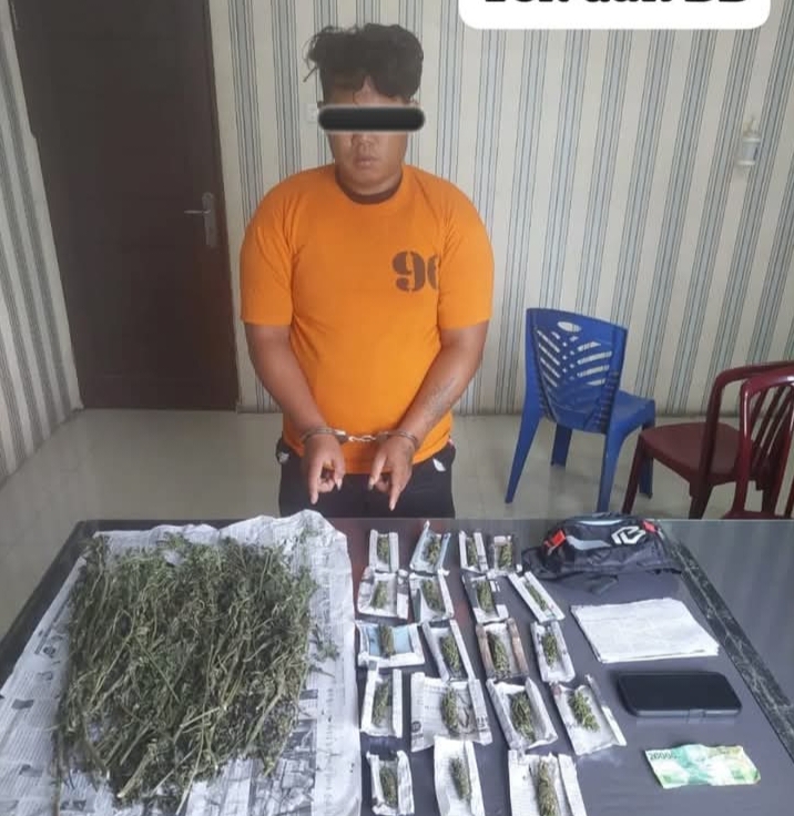 “Dari hasil penggeledahan, petugas menemukan 1 bungkus besar ganja kering seberat netto 190 gram, 19 amp ganja kering dengan total berat 27,19 gram, 13 lembar potongan kertas koran, uang tunai Rp20.000, satu tas selempang hitam, serta 1 unit handphone Android merk Infinix,” jelas Kapolres, Kamis(2/10) pagi di Mapolres.