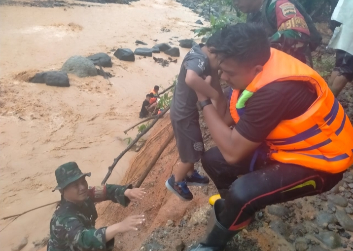 Proses evakuasi dilaksanakan secara terpadu dengan memperhatikan kondisi arus sungai yang meningkat akibat hujan berkelanjutan.