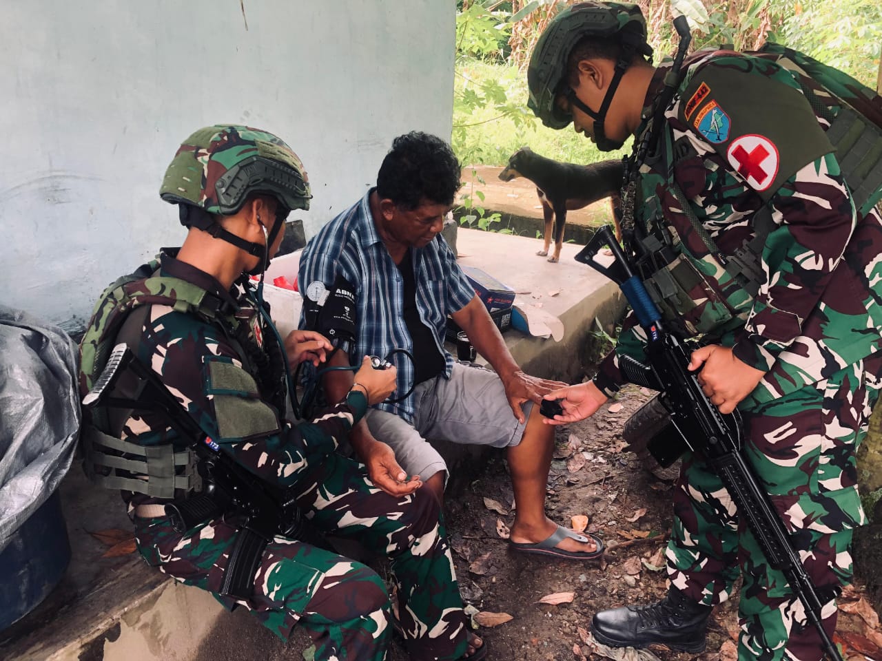 Satgas Pamtas Kewilayahan RI-PNG Yonif 642/Kps terus melaksanakan kegiatan pelayanan kesehatan, Pos yamor melaksanakan pelayanan kesehatan (Yankes) ke Masyarakat dengan mendatangi Rumah-Rumah di Kampung Ururu Distrik Yamor Kabupaten Kaimana, Papua Barat. (3/3/2025)