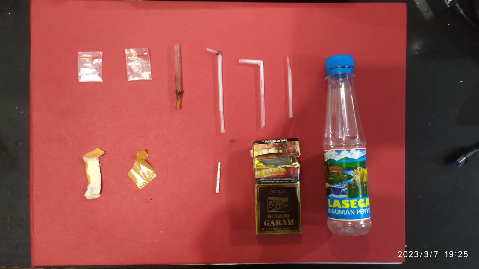 HA diamankan petugas dari rumah kediamannya lantaran didapati barang bukti berupa paket narkoba diduga sabu bruto 0,27 gr, 3 (tiga) alat penghisap sedotan plastik bening yang dirakit, 1 (satu) buah gulungan alumunium foil, Hand Phone serta beberapa barang bukti lainnya pada Selasa 07/03/ 2023 pukul 17.00 wib.