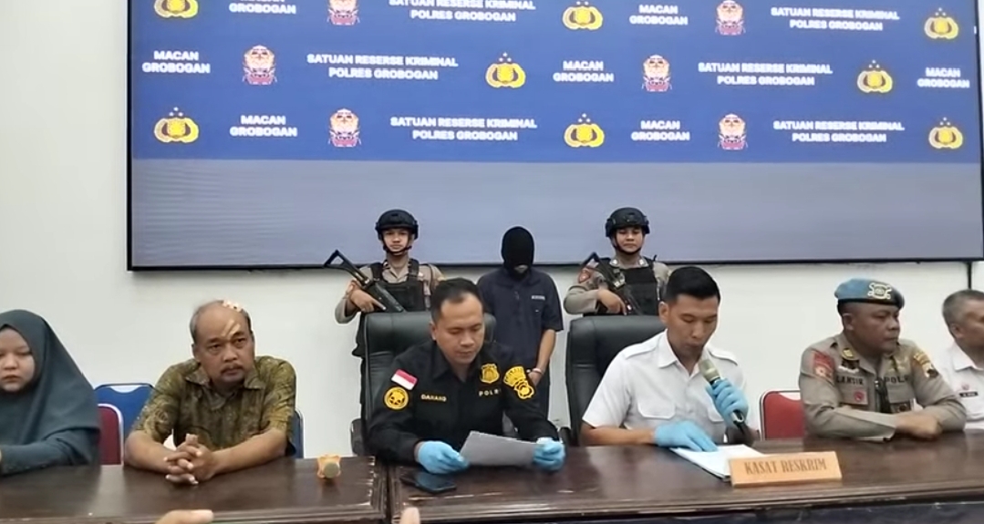 TAMBUNPOS.COM || GROBOGAN – Satreskrim Polres Grobogan berhasil meringkus VR (21) tersangka pelaku pencurian dengan kekerasan di SD Negeri 02 Penawangan pada Senin 14 April 2025 sekira pukul 04.30 pagi. Hal tersebut disampaikan oleh Kasat Reskrim Polres Grobogan AKP. Joko Agung Haryono saat konferensi Pers yang digelar pada Rabu, ( 23/04/2025).