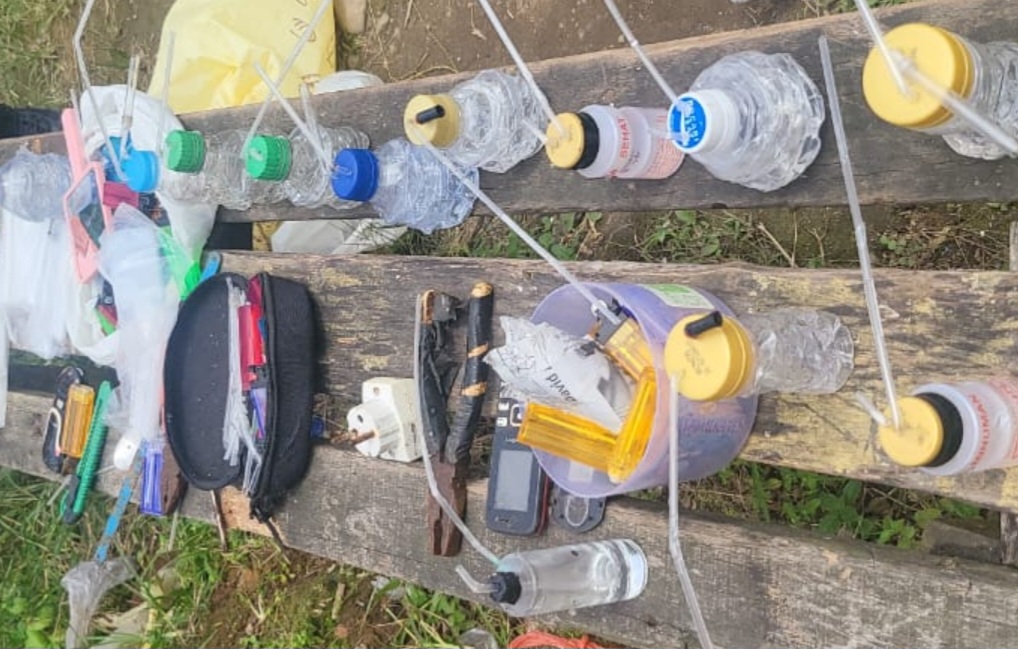 Foto: polisi hanya bisa ngamankan bong alat isap sabu.