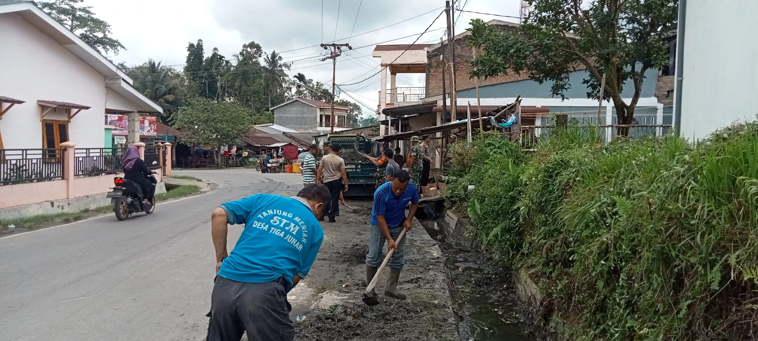 -Personil Polsek Tiga Juhar Polresta Deli Serdang dan Personil Koramil 21 Tiga Juhar bersihkan saluran parit yang telah lama tersumbat akibat timbunan tanah dan pasir di Desa Tiga Juhar Kecamatan STM Hulu.