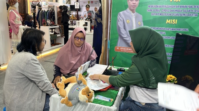 “Selain pelayanan, stand kita juga menampilkan proses jar test koagulasi bagian laboratorium,” jelas Plt Direktur Utama Syahrani.