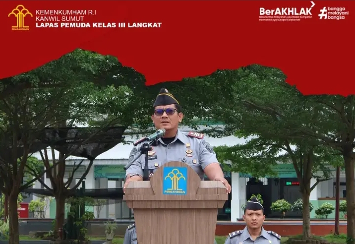 Dalam rangka menumbuhkan rasa kebangsaan dan cinta tanah air serta bela negara kepada warga binaan melalui pelaksanaan upacara kesadaran berbangsa dan bernegara yang dilaksanakan secara rutin untuk mendidik jiwa nasionalisme yang tinggi kepada warga binaan dan petugas serta untuk memupuk disiplin dan tanggung jawab yang dimiliki sebagai insan yang berakhlak, Lapas Pemuda Langkat Kanwil Kemenkumham Sumut Gelar Upacara. Senin (24/06) di lapangan Upacara Gedung II Lapas Pemuda Langkat.