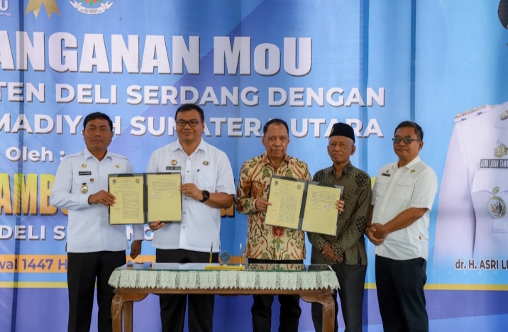 Pemerintah Kabupaten Deliserdang melakukan Penandatangan MoU dengan Universitas Muhammadiyah Sumatera Utara (UMSU). Penandatangan ini dilakukan langsung oleh Bupati Deliserdang dr H Asri Ludin Tambunan, M.Ked (PD)., Sp.PD dengan Rektor UMSU, Prof. Dr. Agussani, MAP di Lahan kampus terpadu UMSU Desa Sampali, Kecamatan Percut Seituan, Kabupaten Deliserdang, Rabu (3/9/2025).